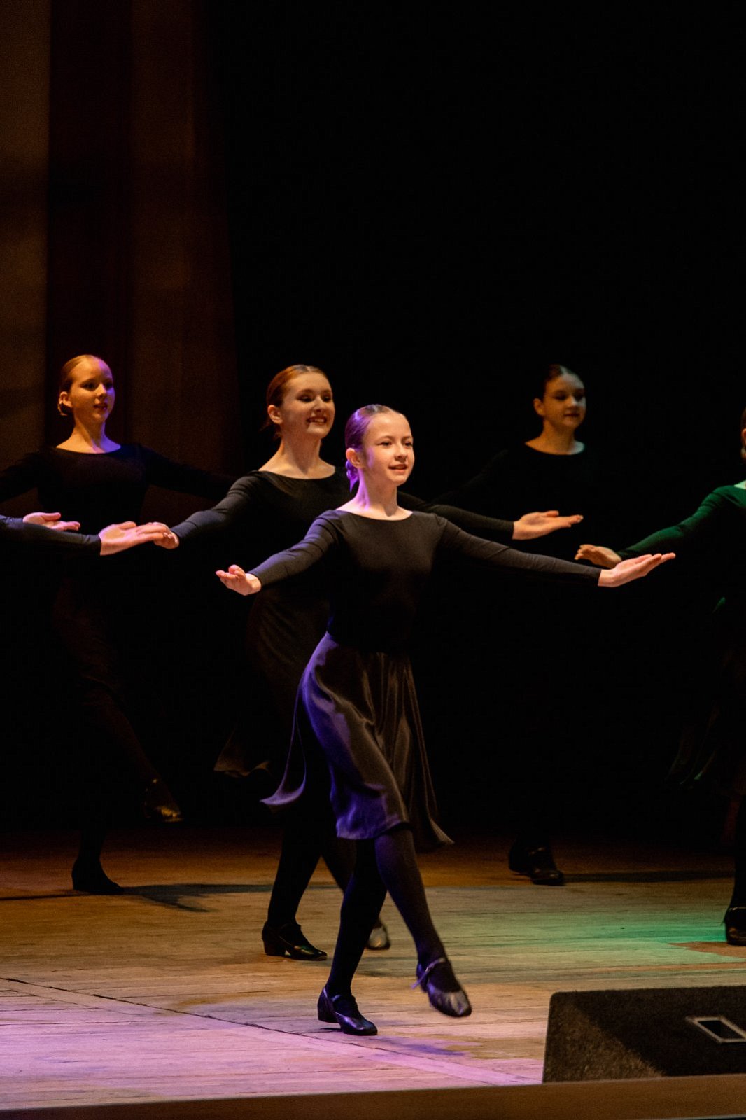 На сцене выступал полный состав ансамбля: от младшей подготовительной группы (самой юной участнице только что исполнилось 4 года) до взрослых состоявшихся танцоров, которые, будучи студентками иногородних университетов, продолжают заниматься и танцевать в «Настасье».